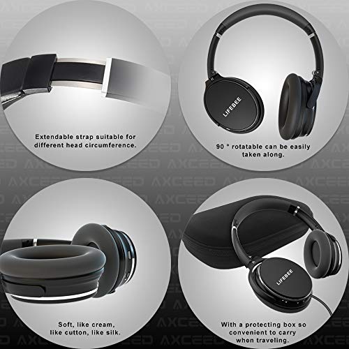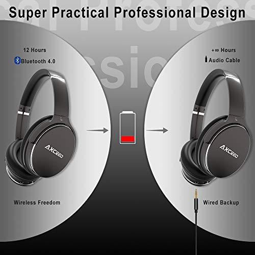 Axceed Bluetooth Cuffie Cancellazione del Rumore Attivo, Cuffie Wireless Senza Fili Over Ear ANC con Mic, Hi-Fi Stereo Deep Bass, 12 Ore di Gioco per Android iOS iPhone TV Film
