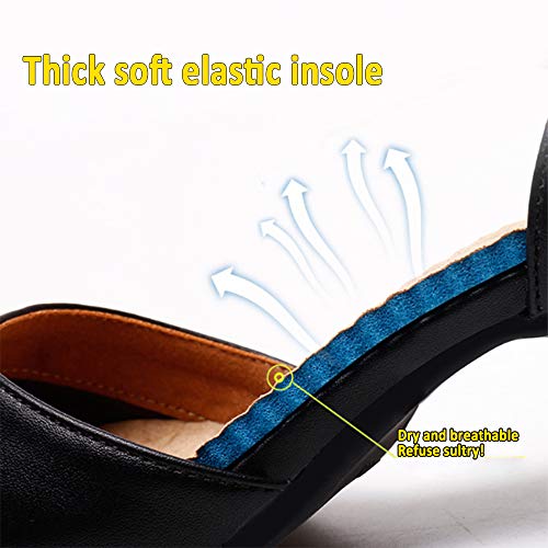 ☞ MATERIALE TRASPIRANTE: le scarpe da ballo sono realizzate in tessuto di pelle microfibra traspirante, che accelera il ciclo alternato di scarpe calde e umide all'interno e aria fresca all'esterno delle scarpe. È fresco e comodo da camminare, facile da giocare, comodo e traspirante;
