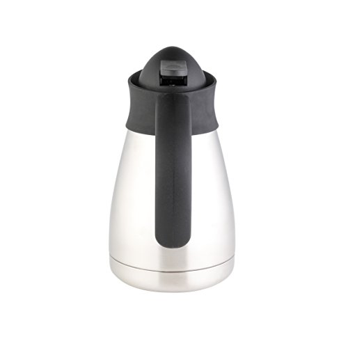 Teiera isolante con 0, 5 litri con pratico meccanismo automatico di versamento - acciaio inox spazzolato opaco con un coperchio e un manico in plastica nera di alta qualità, opaco
