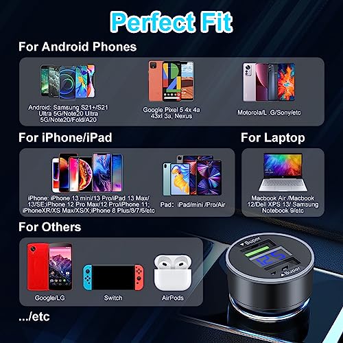 ⚡ 【RICARICA VELOCE】 Questo caricabatterie per auto adotta la tecnologia di ricarica rapida, che può fornire una velocità di ricarica più rapida per dispositivi compatibili, consentendo ai tuoi dispositivi di essere completamente caricati in breve tempo. Quando la spia LED blu sul caricatore USB dell'accendisigari si accende, l'adattatore del caricatore per auto è collegato.