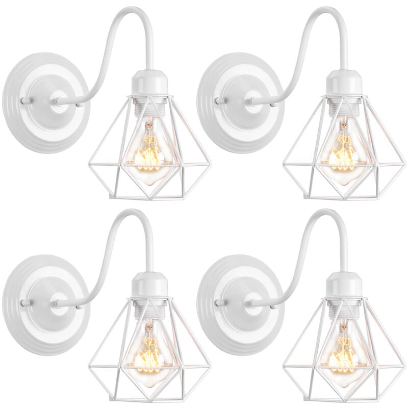 Applique dal design retrò e industriale, dal look vintage ed elegante. È una buona illuminazione e decorazione per creare un'atmosfera nostalgica a casa o in altri locali commerciali. Caratteristiche: 1. Design retrò: non solo illuminazione, ma anche una bellissima decorazione per casa, bar e ristorante, ufficio. 2. Materiale durevole e superficie liscia, un eccellente rivestimento bianco può proteggere il ferro a lungo senza sbucciarsi. 3. Installazione semplice, include tutto l'hardware di montaggio per un'installazione semplice e veloce. Specifiche: Tipo: lampada da parete industriale Stile: industriale, vintage, geometrico, a gabbia Materiali: metallo Attacco lampadina: E27 Lampadina inclusa: Le lampadine non sono incluse. Tipo di lampada: a incandescenza/alogena/LED Potenza massima: 60 W Colore: bianco Quantità: 4 applique senza lampadina Taglia: Gabbia: 16x16 cm Base a soffitto: Ø 14 cm