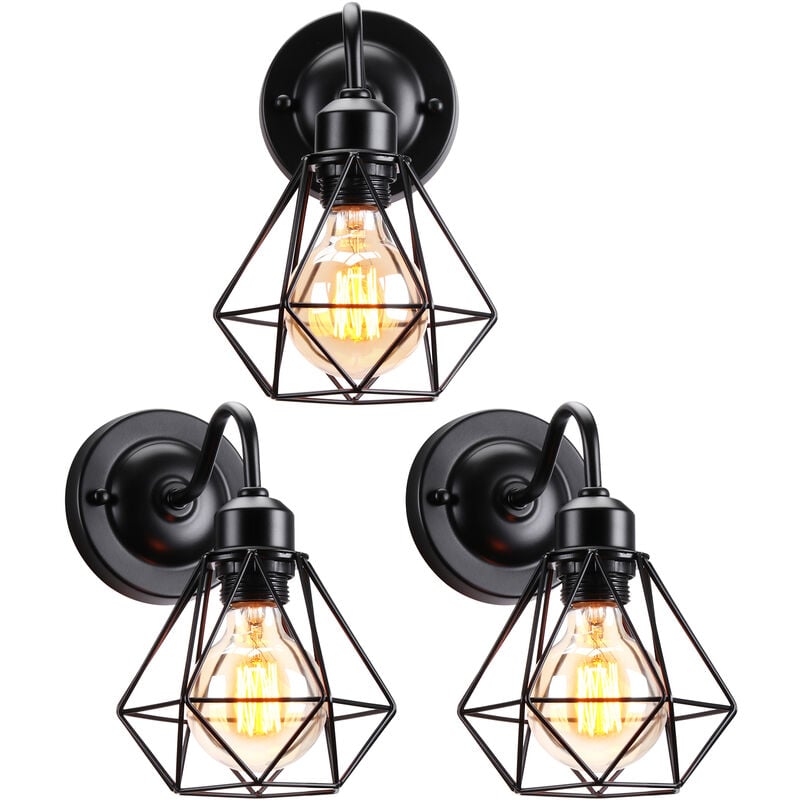 Applique dal design retrò e industriale, dal look vintage ed elegante. È una buona illuminazione e decorazione per creare un'atmosfera nostalgica a casa o in altri locali commerciali. Caratteristiche: 1. Design retrò: non solo illuminazione, ma anche una bellissima decorazione per casa, bar e ristorante, ufficio. 2. Materiale durevole e superficie liscia, un eccellente rivestimento nero può proteggere il ferro a lungo senza sbucciarsi. 3. Installazione semplice, include tutto l'hardware di montaggio per un'installazione semplice e veloce. Specifiche: Tipo: lampada da parete industriale Stile: industriale, vintage, geometrico, a gabbia Materiali: metallo Attacco lampadina: E27 Lampadina inclusa: Le lampadine non sono incluse. Tipo di lampada: a incandescenza/alogena/LED Potenza massima: 60 W Colore: nero Quantità: 3 applique senza lampadina Taglia: Gabbia: 16x16 cm Base a soffitto: Ø 12 cm