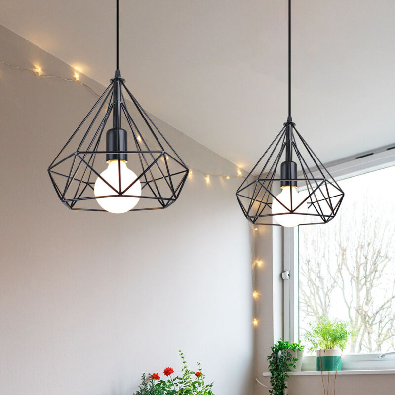 • Questo lampadario a forma di diamante con paralume è semplice ed elegante, conferendo a qualsiasi stanza un tocco retrò. • Superficie anticorrosione e resistente alla corrosione, vernice ad alta temperatura, non facile da sbiadire, garanzia di qualità. • Tutti gli accessori per l'installazione sono già inclusi nella confezione. L'installazione richiede solo pochi minuti ed è molto facile da usare. • L'applique è ideale per soggiorni, luoghi di lavoro, cucine, scale, corridoi, sale espositive, bar, ecc. Specifiche: • Prodotto: Lampada a forma di diamante • Stile: Stile industriale • Colore: Nero • Misure: altezza 24 cm, larghezza 25 cm • Diametro soffitto: 10 cm • Cavo regolabile: 100 cm • Dimensioni consigliate della stanza: 10-15 mq • Voltaggio: 220 V, adatto a tutte le lampadine a spirale E27 (senza lampadina) • Specifiche di illuminazione: Potenza: 25-60 W (60 W massimo) La confezione include: • 2 portacandele a forma di diamante