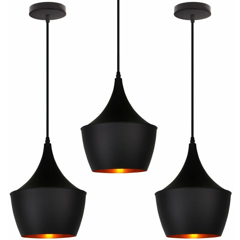• Il design accattivante e creativo del paralume, semplice e unico, rende il lampadario più vivido. • Verniciatura ad alta temperatura anticorrosione e antiruggine superficiale, non facile da sbiadire, garanzia di qualità. • Tutti gli accessori per l'installazione sono già inclusi nella confezione. L'installazione richiede solo pochi minuti e il funzionamento è molto semplice. • Il lampadario è ideale per soggiorni, luoghi di lavoro, cucine, scale, corridoi, sale espositive, bar, ecc. Specifiche: • Prodotto: Lampada a sospensione moderna • Colore: Nero • Dimensioni: Ø22*28 cm • Diametro soffitto: 10 cm • Cavo regolabile 100 cm • Dimensioni consigliate della stanza: 10 -15 mq • Voltaggio: 220V, adatto a tutte le lampadine a spirale E27 (lampadina esclusa) • Specifiche illuminotecniche: Potenza: 25-60W (massimo 60W) Il pacchetto include: • 3 lampade a sospensione moderne