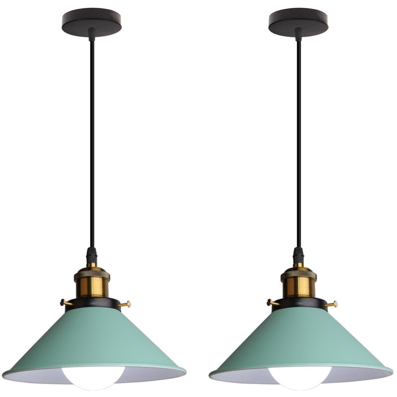 • Questa lampada a sospensione combina stile moderno e vintage. Il metallo verde, i raccordi in ottone e una finitura opaca conferiscono alla lampada a sospensione un aspetto retrò che si sposa bene con gli arredi moderni e non è mai in ritardo. • Superficie anticorrosione e antiruggine, verniciatura ad alta temperatura, non facile da sbiadire, garanzia di qualità. • Adatto per sala da pranzo, soggiorno, camera da letto, cucina, ristorante, gallerie, bar, birreria, laboratorio di artisti, ufficio, caffetteria, bar, club, angolo lettura, stanza dell'artigianato, scale e altri scopi di illuminazione. Specifiche: • Prodotto: Lampada a sospensione • Colore: verde • Materiale: metalli • Dimensioni: 22*15 cm • Diametro soffitto: 10 cm • Cavo regolabile: 100 cm • Dimensioni consigliate della stanza: 10-15 mq • Voltaggio: 220 V, adatto a tutte le lampade a spirale E27 (senza lampadina) • Illuminazione specifiche: Potenza: 25-60W (massimo 60W) Contenuto della confezione: • 2 lampade a