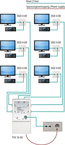 Axing TVS 16-00 Amplificatore per antenna TV digitale terrestre e FM radio, 6 Uscite, 10 dB, 47-862 MHz