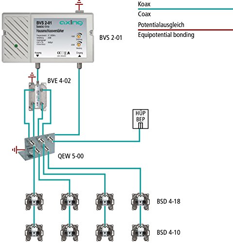 Axing BVS 2-01 Amplificatore per allacciamento domestico (25 dB, 47-862 MHz, 98 dBμV) per antenna digitale terrestre tv