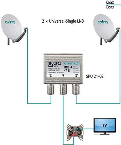 Axing SPU 21-02 Interruttore DiSEqC 2x1 Commutatore satellitare 2 ingressi, 1 uscita (con protezione per intemperie)