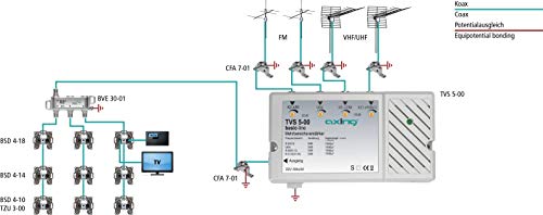 Axing TVS 5-00 amplificatore 30 dB per digitale terrestre antenna tv e radio (FM e DAB), 4 ingressi FM, VHF1, VHF3, UHF