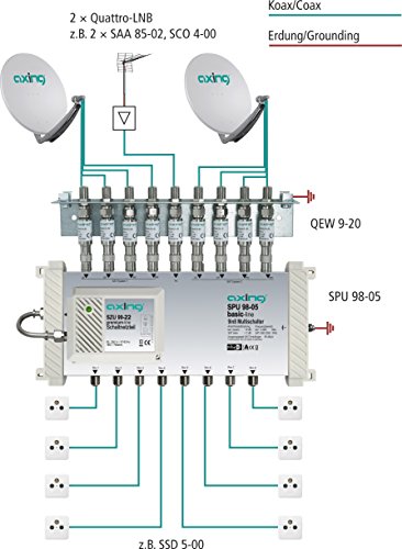 Axing SPU 98-05 DiSEqC commutatore satellitare interruttore Multiswitch 9 a 8 con Amplificatore per SAT