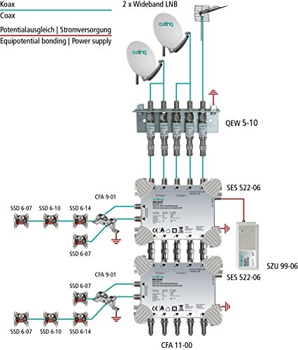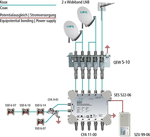 Per il collegamento a un LNB Quattro (ricetrasmittente, non è necessario alcun alimentatore) o 2 LNB Wideband.