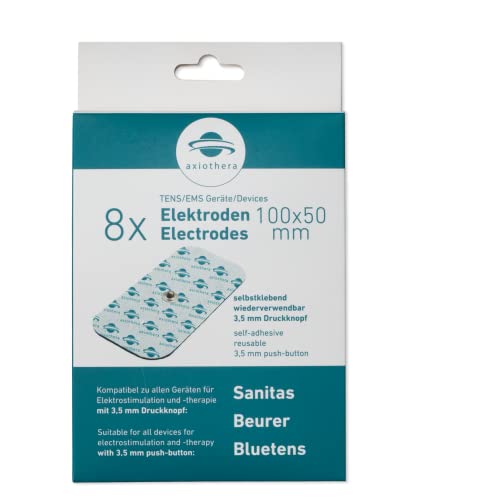 Axiothera 8 elettrodi adesivi 10x5 cm compatibili con i dispositivi EMS Sanitas e Beurer | per la stimolazione muscolare e il massaggio | dispositivo medico certificato con pulsante da 3,5 cm