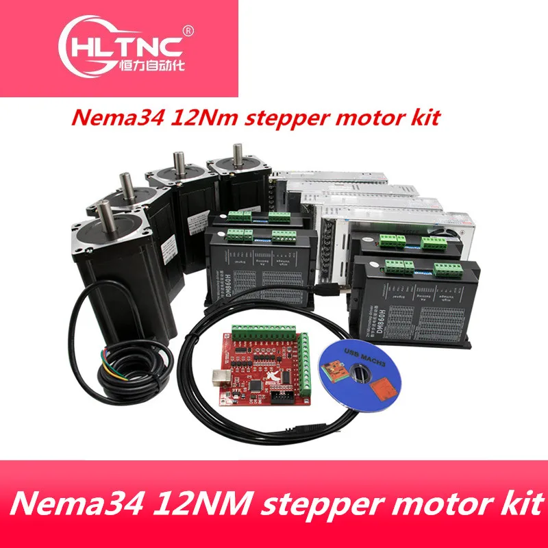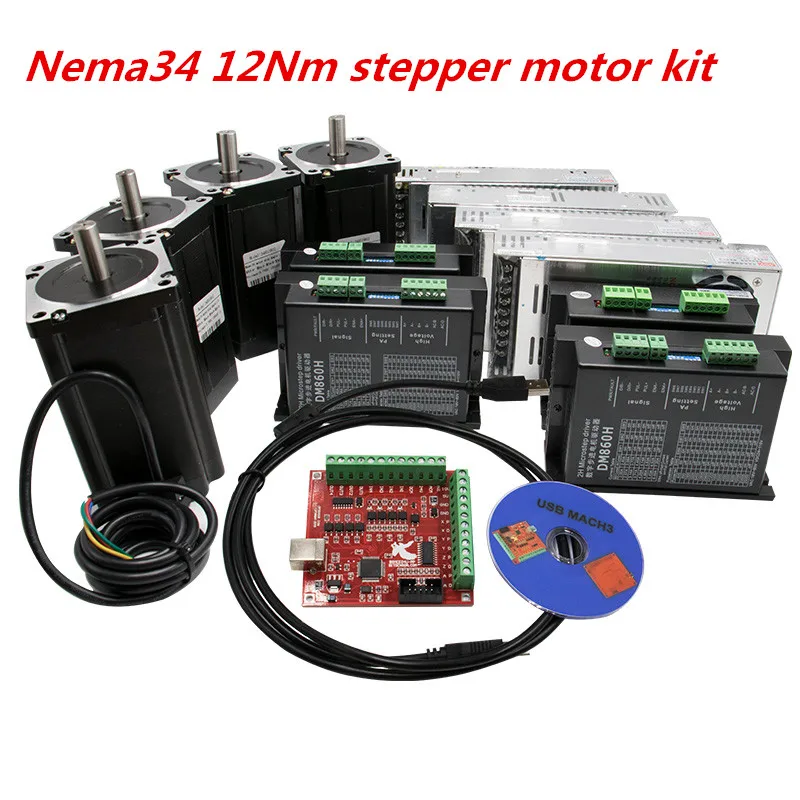 3 Axis CNC kit Nema 34 1600Oz-in/6A 86HS6204 12Nm Stepper Motor & 6A/110VDC Microstep motor driver for CNC Milling Machine