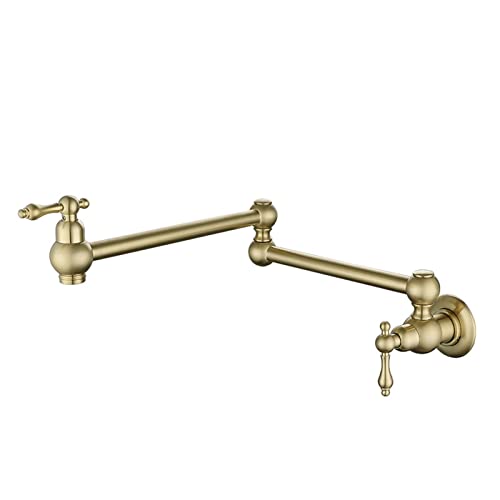 AXOIN Pot Filler montaggio a parete in ottone massiccio Pot Filler Tap doppio snodato oscillante Pentola da cucina Filler più colori rubinetti (colore: oro spazzolato, taglia: 1)