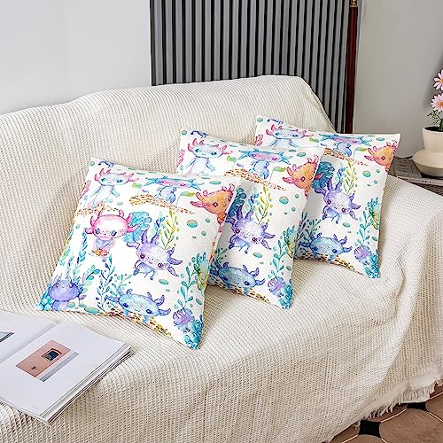 Axolotl - Set di 2 federe per cuscino 50 x 50 cm, motivo salamandra in stile kawaii, oceano, mare, mare, decorazione per la stanza, federe colorate
