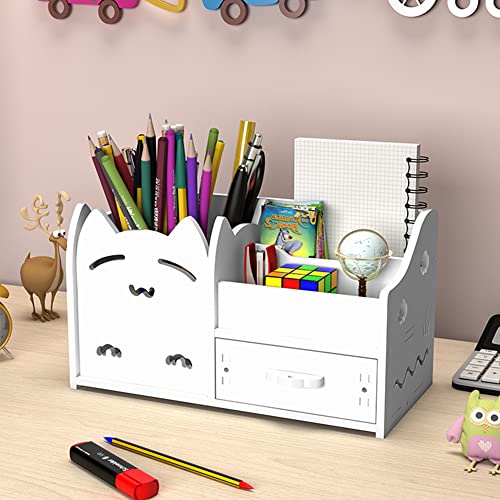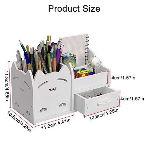 Axroad Mall Portapenne da scrivania bianco, simpatico organizzatore da scrivania fai da te, scatola di immagazzinamento ordinata con cassetto, organizzatore multifunzionale per la cancelleria