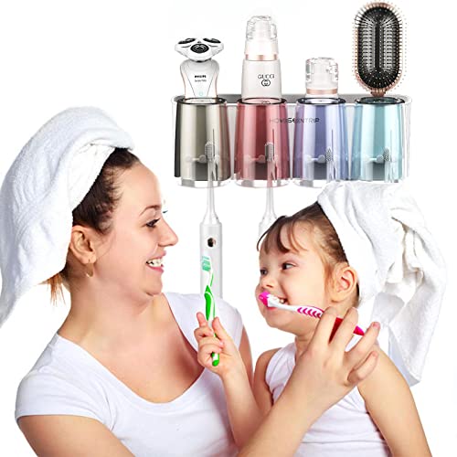 AXYWINBO Porta Spazzolino Elettrico Portaspazzolini da Bagno da Parete Portaspazzolino Preferito dai Bambini Set Famiglia Montato a Parete Bicchiere Spazzolini da Bagno Multifunzione con 4 Tazze