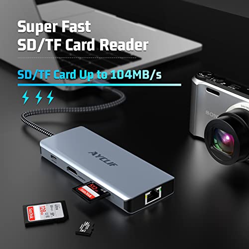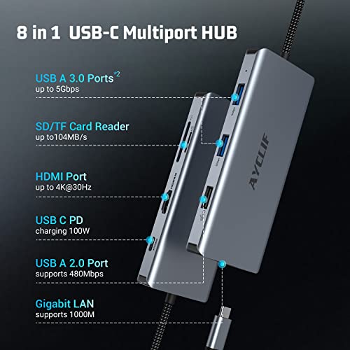 AYCLIF USB C hub, 8 su 1 adattatore USB C con Doppio Display 4K HDMI, Docking Station USB C per MacBook Pro/Air (Gigabit Ethernet, 5 Gbps USB 3.0, PD 100W, SD/TF Reader) per Dell,Surface,HP,Lenovo