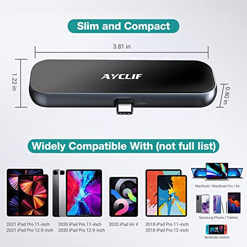 AYCLIF Hub USB C per iPad Pro, Adattatore 6 in 1 USB C per iPad Pro 2021 2020 2018 12.9/11'', Dongle iPad Air 4 con HDMI 4K, USB 3.0, SD/TF,Ricarica rapida PD da 100 W,Jack per cuffie