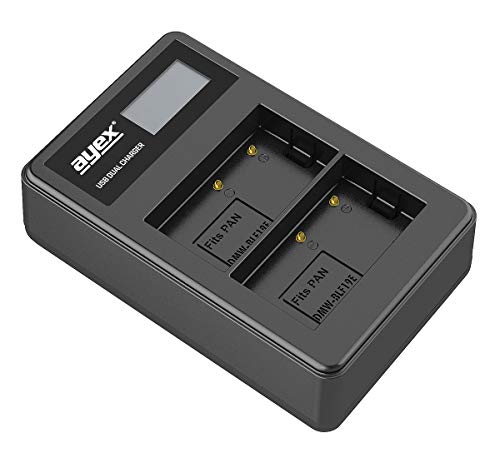 Ayex Caricatore USB doppio per batterie agli ioni di litio Panasonic tipo DMW-BLF19E - Ricarica tramite presa USB, laptop, Power Bank o PC - Display LCD con indicatore di carica