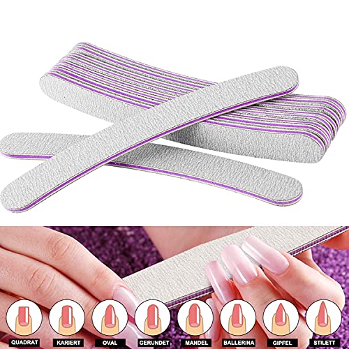 AYITOO Set di 40 Lime Per Unghie,100/180 Lima per Unghie a Doppia Faccia, Ladies Professionale per Arte Manicure, Colore: Grigio/Nucleo Viola,10 Curva+ 10 Diritta+ 10 Trapezoidale + 10 Buffer