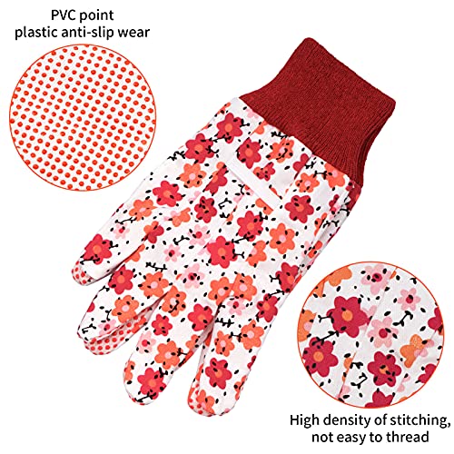 Punti in PVC e design antiscivolo: questi guanti da giardino floreali sono dotati di punti antiscivolo in PVC che offrono una presa supplementare per evitare che le mani scivolino e garantiscono un buon sostegno, tenendo le mani lontane da polvere e sporco.
