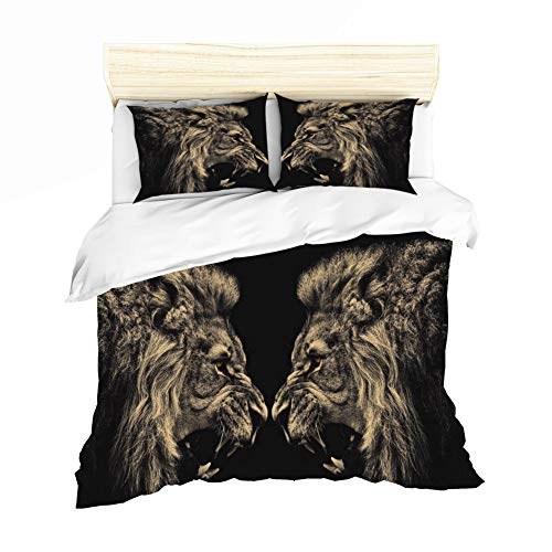 AYMAING Set Copripiumino Set Copripiumino Re Leone 3D 135x200 Cm Set Biancheria da Letto 3 Pezzi Copripiumini Copripiumino in Microfibra con Cerniera E 2 Federe 80 X 80 Cm
