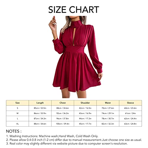 AYNEFY Abito da Donna a Collo Alto con Scollo a Pieghe Abito Elegante a Maniche Lunghe a Maniche Lunghe in Tinta Unita per Incontri di Matrimonio in Club Party(L-Rosso)