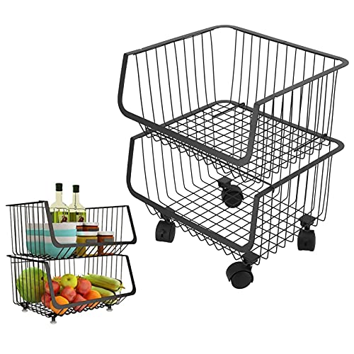 AYNEFY Cestino portaoggetti, 2 Livelli con Ruote Lavagne - Cestini appesi Cestino per Frutta e Verdura Cesto impilabile per cucinaArticoli da toeletta per Frutta e Verdura, portaoggetti da Bagno
