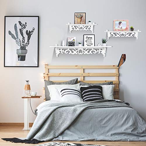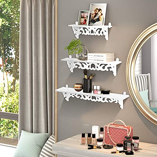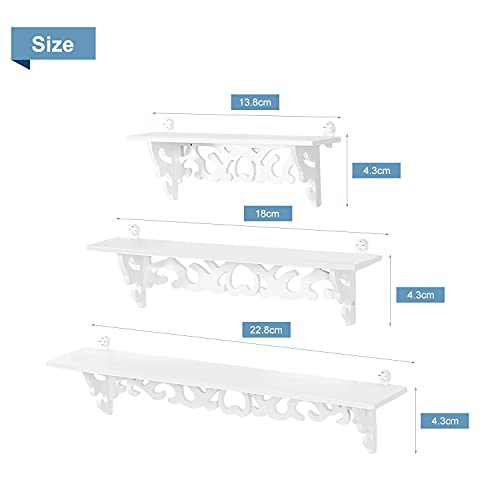 AYNEFY Mensole galleggianti da parete, colore bianco, con intaglio, set da 3 scaffali da parete in stile shabby floating Wall