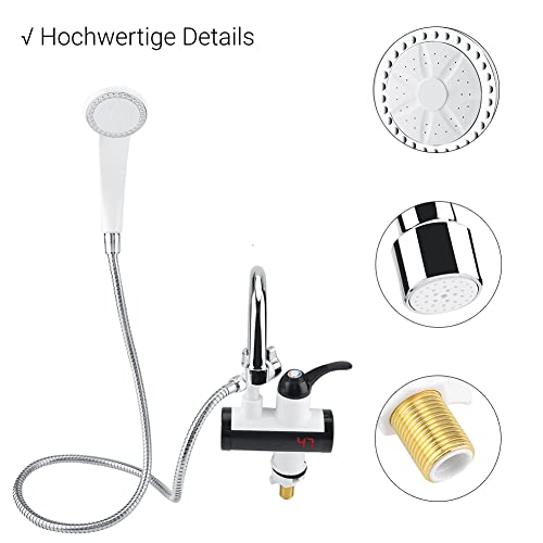 AYNEFY Rubinetto elettrico con soffione per doccia piccolo, a risparmio idrico, con indicatore di temperatura LCD, per cucina, bagno e bagno (EU 220 V)