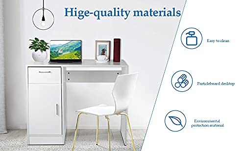 AYNEFY Scrivania per computer, in materiali di legno, con 1 cassetto e 1 porta, tavolo da conferenza, tavolo da pranzo, per casa e ufficio, 90 x 40 x 75 cm (larghezza x profondità x altezza) (bianco)