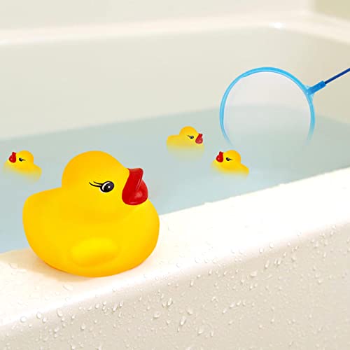 AYNKH 50pcs Anatra di Gomma con Borsa di Stoccaggio a Rete Galleggiante e scricchiolante Mini Anatra Giallo Baby Doccia Giocattolo Festa Decorazione Gioco di Pesca per Tutti - Ragazzi Ragazze