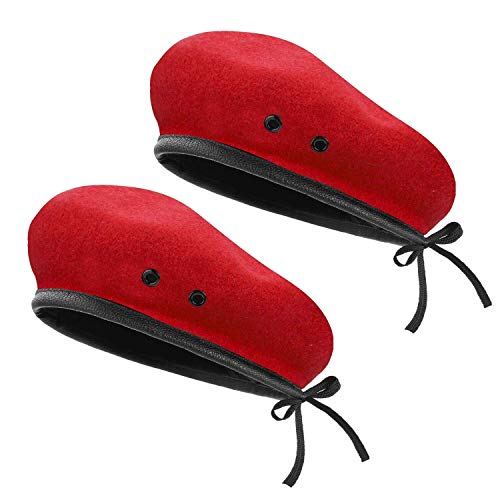AYPOW Berretti di Lana, Berretti Stile Esercito Militare da Uomo con Rifiniture in Pelle - Regolabili, Taglia Unica (Rosso)