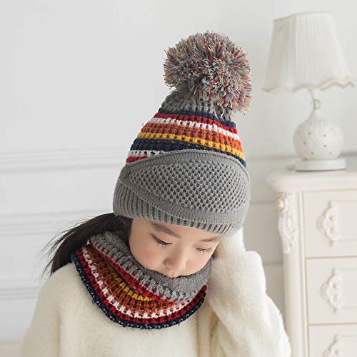 AYPOW Warm Cappelli Sciarpa Set, Donna Ragazza Inverno Cappellini Thermal Thick Knitted Fleece Liner Stripe Ball Beanie Hat Scaldacollo Set per Interni ed Esterni