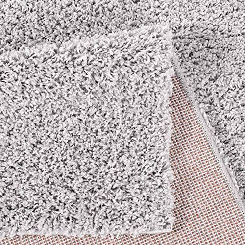 Ayshaggy Shaggy Tappeto Pelo Lungo in Bianco e Nero Tinta Unita per Soggiorno, Corridoio in Rettangolare, Rotondo e Quadrati - Argento, 80 cm_x_150 cm