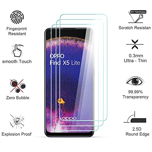 AYSOW Pezzi Pellicola Protettiva Compatibile con Oppo Find X5 Lite Vetro temperato 0.3mm 9H Durezza 2.5D Film, Anti Graffio, Bolla Libera 3 Pezzi