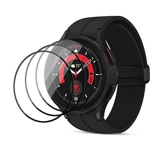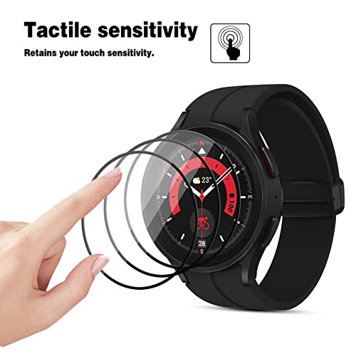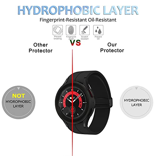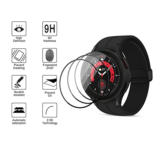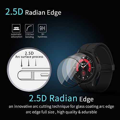 【Senza bolle e facile da installare】 installazione senza bolle e senza frustrazioni. Il forte adesivo della custodia protettiva in vetro temperato assicura che la protezione dello schermo del Samsung Galaxy Watch5 Pro sia facile da installare e robusta. Non cade e non ci sono bolle dopo averlo applicato.
