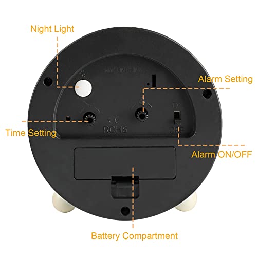 Sveglia per bambini facile da usare: per inserire la batteria, rimuovere la cover sul retro e inserire la batteria. Alimentato da 1,5 V x 2 batterie AAA (non incluse). Non utilizzare batterie alcaline, poiché una corrente eccessiva può danneggiare il movimento, poiché il tempo non è preciso.