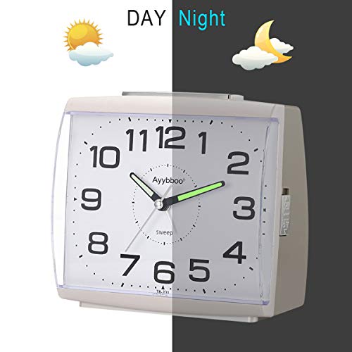 Ayybboo Sveglia Analogica, Sveglia da Comodino Sveglia al Quarzo Sveglia Silenziosa con Luce Senza Ticchettio Semplice Orologio Sveglia da Tavolo Snooze Sveglie per Bambini (Bianco)