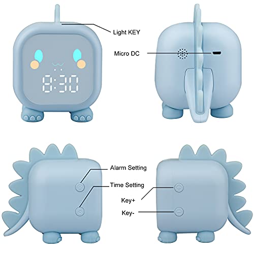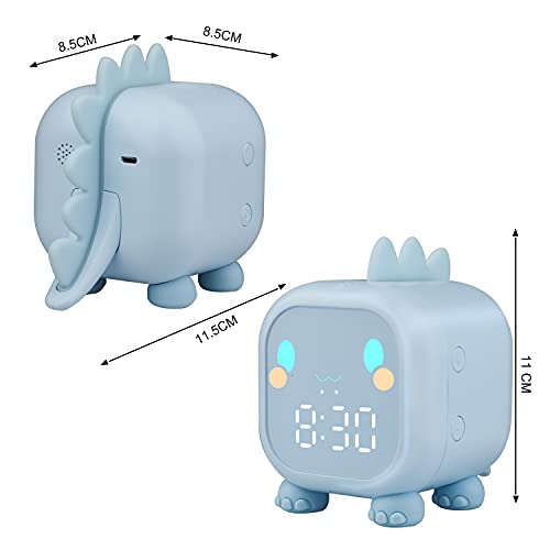 Ayybboo Sveglia Digitale per Bambini, Sveglia Ragazze da Comodino con Simulatore di Alba, Dinosauro Sveglie Funzione di Snooze Luce Notturna Colorata Temporizzata, Orologio Digitale da Tavolo (Blu)