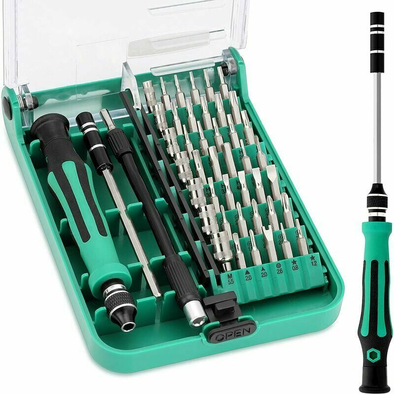 Descrizione del prodotto 45 set di set di cacciaviti tascabili di precisione, perfetti per smontare e preparare telefoni cellulari, laptop, tablet, console di gioco, PSP, X-box, PC, occhiali, orologi. Fornisce inoltre un'eccellente coppia e impedisce alla rilegatura di scivolare. Ogni articolo è riposto in modo sicuro in una robusta custodia con contrassegni per ogni dimensione che ne facilitano l'identificazione e l'organizzazione e ti catturano immediatamente quando manca qualcosa.estensione e un kit di altri 42 kit. Viene fornito con una barra di estensione che può essere inserita nella maniglia per la regolazione della lunghezza.La lunghezza della maniglia collegata alla barra di estensione è di 210 mm. La maniglia è progettata sulla base della meccanica umana, il che rende il funzionamento più efficiente e conveniente. La protezione esagonale del rotolo impedisce il fastidioso rotolamento sul posto di lavoro. Ciò interrompe la ricerca degli strumenti eliminati. Pennini molto