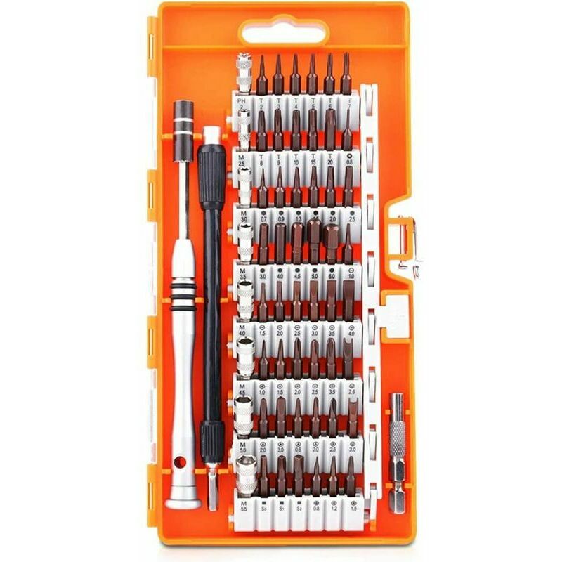 Kit di cacciaviti professionali - Il set di cacciaviti di precisione 60 in 1 contiene vari tipi di strumenti, progettati per riparare macchine da gioco (Nintendo), computer, dispositivi mobili, fotocamere e altri oggetti di precisione come orologi e occhiali. Materiali di alta qualità: le punte per cacciavite sono realizzate in acciaio per utensili tedesco S2. La durezza può anche superare i 60 HRC. L'alloggiamento è realizzato in materiale ABS resistente al sudore e alla corrosione. Varietà di punte - Selezioniamo accuratamente 55 punte per cacciavite (compresa la presa da 8 punte inclusa) per aiutarti nella tua lavorare e soddisfare tutte le vostre esigenze per molte applicazioni di riparazione. Allo stesso tempo, con una varietà di accessori, il cacciavite può funzionare meglio. Compatto e portatile: strumenti hardware professionali riuniti in una piccola custodia per mantenere tutto in ordine e organizzato. La custodia in plastica piccola, leggera e maneggevole può essere