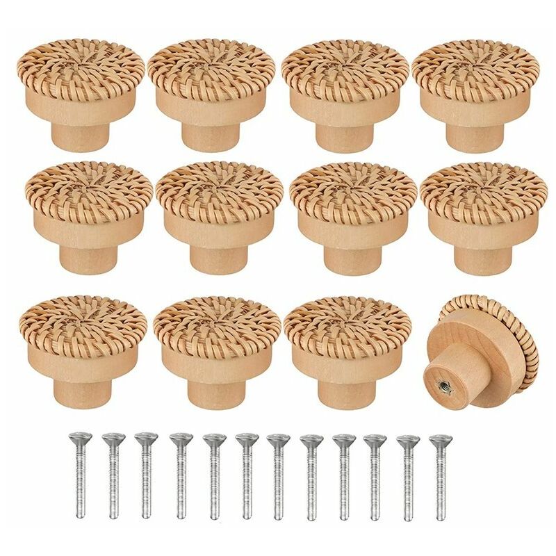Boho moderno: questi pomelli per mobili in rattan sono realizzati con pomelli in legno e rattan naturale. Il puro rattan intrecciato a mano mantiene lo stile naturale abbinato ai bottoni in legno. Riceverai 12 pomelli per cassetti Boho e 12 viti. Dimensioni: la dimensione di ogni pomello è 40 mm di larghezza x 30 mm di altezza, che è la dimensione più comunemente usata per i mobili. Tienilo in mano, ha le dimensioni giuste. Facilità di installazione e durata: i nostri pomelli in rattan per armadi e cassetti sono molto facili da installare, devi solo preparare un cacciavite, altrimenti non c'è anche bisogno di strumenti, puoi installarlo direttamente a mano. È molto facile per le ragazze o le donne eseguire l'installazione da sole. Design fatto a mano: design unico in rattan, rende i tuoi mobili in stile bohémien. Ideale per armadi, mobili da cucina, maniglia della porta, maniglia dell'armadio, cassetto, cassettiera, pattumiera, armadio, scrivania, ufficio, asilo nido e così via.