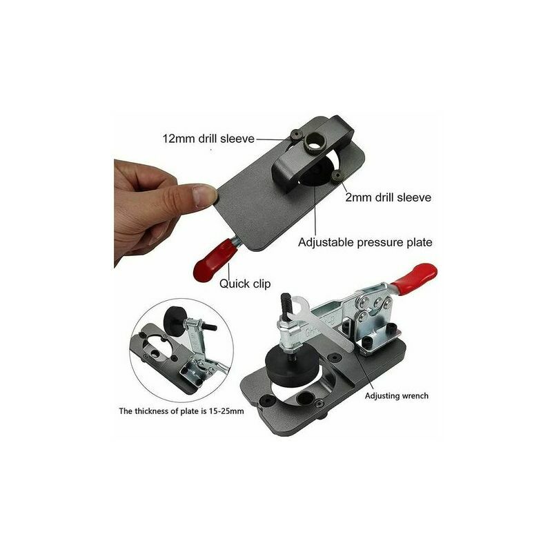 Durevole - Realizzato in lega di alluminio, lavorazione di precisione, posizionamento preciso, funzionamento conveniente. Ha una lunga durata. 【Scopo】 Installazione dell'apertura della cerniera da 35 mm, posizionamento della punzonatura della cerniera della porta, strumento ausiliario per l'apertura del foro per la lavorazione del legno 【Facile da usare】 Installare l'apriforo da 35 mm, regolare normalmente la profondità del foro a 12-13 mm, quindi bloccare l'anello limite. 【Il set include:】 Corpo del localizzatore di punzoni per cerniere, apri foro da 35 mm (con anello limite) * 1, chiave inglese * 2, punta da trapano da 2 mm * 1, chiave esagonale * 1 【Regalo perfetto】 La guida del trapano è regolabile per tensionare tavole di legno di diversi spessori. È un ottimo kit di strumenti per mobilieri e appassionati di lavorazione del legno.