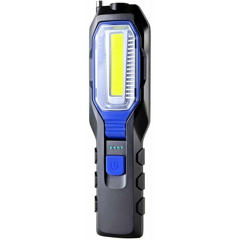 Potente luce da lavoro COB + LED - La luce COB da 3 W (280 lumen) nel corpo del dispositivo fornisce un raggio potente che può coprire un'area più ampia, mentre la luce LED da 1 W (80 lumen) sulla parte superiore fornisce un'illuminazione ultra luminosa messa a fuoco della luce che può sparare a distanze maggiori 【4 modalità di lavoro】 4 modalità di illuminazione possono essere cambiate semplicemente premendo il pulsante on/off. Disponibile con luce frontale a LED, luce alta COB, luce bassa COB e strobo rosso COB per soddisfare le esigenze di illuminazione quotidiana o varie situazioni di emergenza. oggetti in luoghi lontani e stretti dove le mani semplicemente non possono entrare. Grazie al gancio ribaltabile in ABS e al potente magnete sul retro, puoi appendere o incollare la lampada da lavoro su qualsiasi superficie metallica per liberare le mani 【Cavo di ricarica USB 3 in 1 e indicatore LED della batteria】 Le batterie ricaricabili da 2800 mAh durano per ore in viaggio quando sono