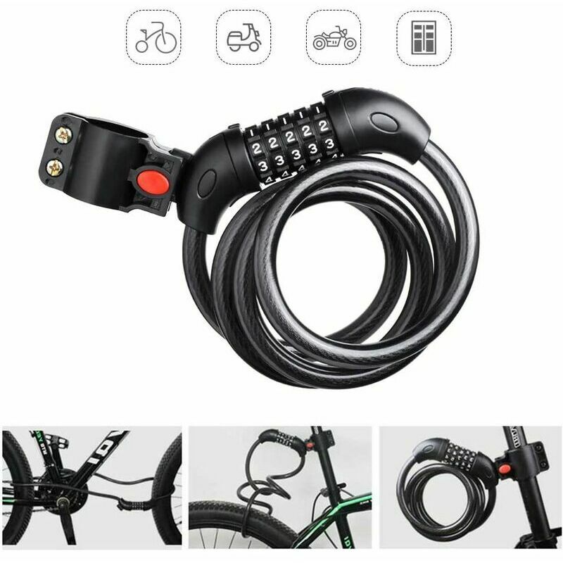 Design resistente? Questo lucchetto per bici è realizzato in robusto cavo d'acciaio con una testa di bloccaggio in lega per la massima resistenza al taglio, che lo rende forte e durevole. Realizzato con guscio in plastica ABS di alta qualità e rivestimento protettivo con una superficie liscia per evitare di danneggiare la tua bici ? Alta sicurezza? I nostri lucchetti sono dotati di lucchetti con combinazione a 5 cifre e la combinazione può essere facilmente sbloccata semplicemente ruotando le cifre nella posizione corretta, evitando così di perdere le chiavi.Fino a 100.000 combinazioni di password per una maggiore sicurezza ? alta qualità? Il cavo flessibile in acciaio intrecciato è lungo 116 cm e spesso 12 mm, questo lucchetto è sicuro e protetto quando è necessario bloccare la bicicletta o altri oggetti contro il furto (ad esempio griglie, scooter, recinzioni, scale, tosaerba, ecc.)< /li> ? Portabilità? Il lucchetto con cavo viene fornito con una staffa che può essere fissata al