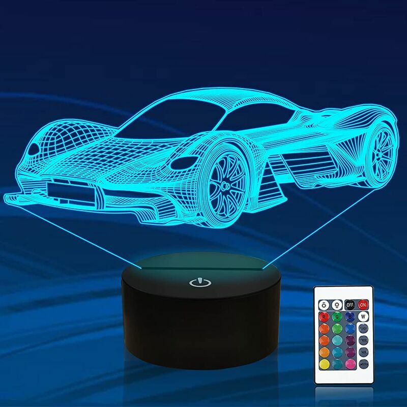 Effetto visivo 3D creativo La lampada per auto è realizzata con incisione laser su lastra acrilica ottica per mostrare l'incredibile illusione ottica 3D. La luce notturna per bambini è un giocattolo unico per tutti i piccoli appassionati di auto e ha un senso di fantasia. È un ottimo arredo per la stanza a tema veicolo. Telecomando + Timer + Dimmer + Smart Touch La luce notturna per auto appena aggiornata può essere impostata gratuitamente da 15 minuti a 12 ore. La lampada 3D ha 16 colori cangianti e 4 tipi di lampeggiamento e puoi regolare la luminosità della luce per non influire sul tuo sonno. Ecologico e sicuro La DIMENSIONE più grande del pannello acrilico antigraffio è realizzato in materiale ecologico approvato sicuro che è innocuo per il corpo umano. Luce LED di alta qualità con luce morbida, uniforme e senza sfarfallio, innocua per gli occhi dei bambini / Due metodi di alimentazione: 3 batterie AAA (non incluse) o cavo USB. Regalo personalizzato La lampada dell'ologramma