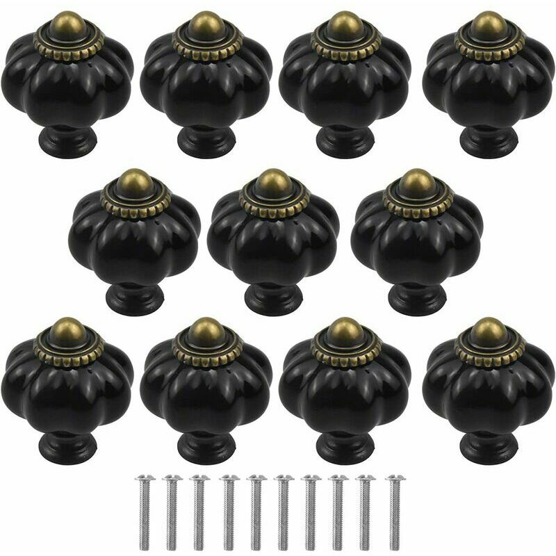 Il pacchetto include - 10 pomelli vintage per armadi a forma di zucca e 10 viti, quantità sufficiente, adatti a tutti i tipi di ante di cassetti, ante di armadi, ante di armadi e armadi, ecc. 【Durevole e liscia】 La maniglia del cassetto a foro singolo è realizzata in acrilico e lega di zinco, impermeabile, antiruggine e resistente. Lucidato con cura, senza bordi e angoli, liscio e non tagliente, sicuro per i bambini. Consente di aprire e chiudere cassetti, ante di armadi, ecc. senza sforzo. 【Squisito e carino】 La maniglia della porta ha un bel design a forma di zucca e un elegante colore nero/chiaro, che è sia pratico che decorativo. Il design eccezionale può abbinarsi a vari stili di arredamento. Può essere la ciliegina sulla torta per la decorazione della tua casa. 【Facile da installare】 Viene fornito con 10 viti, non è necessario acquistare separatamente gli accessori per le maniglie dei cassetti. (Il diametro della filettatura della manopola è di 4 mm e la lunghezza della vite è
