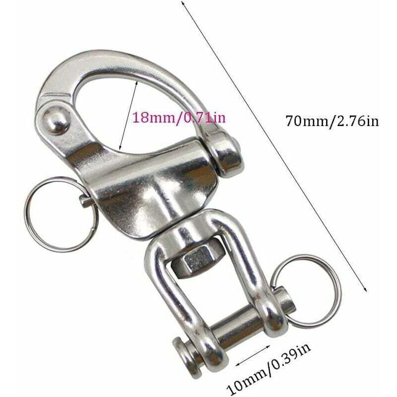 Materiale di alta qualità: il grillo a sgancio rapido è realizzato in acciaio inossidabile 316, fusione di precisione, resistente alla corrosione, antiruggine, robusto e durevole, con qualità accettabile e alta resistenza. Design unico: l'ancora a molla il grillo adotta il design del perno a forcella, il perno può essere tirato, il che è comodo per l'inserimento della catena o della fune, ed è dotato di un anello di sicurezza. Squisita fattura: la girella a sgancio rapido la superficie a scatto dell'occhio è lucidata, con alta precisione e luminosità. La sua superficie è liscia e delicata e sembra di fascia alta. Facile da usare: il grillo a scatto è facile da usare, il suo perno a sgancio rapido può rilasciare la fibbia caricata a molla anche quando è stretto, ti offre un'esperienza comoda e pratica. Ampia applicazione: il grillo marino girevole a sgancio rapido può essere utilizzato per le immersioni, il surf, l'esterno della linea di vita, l'imbracatura dello spinnaker a vela, ecc.